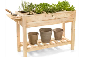 Praktische karaktervolle kweektafel met moestuinbak van 100 x 80 x 37 cm uit niet-geïmpregneerd dennenhout. Praktische ladderrek, dat zowel horizontaal als verticaal kan worden gebruikt. Aan de onderkant van dit model krijgt u ook ruimte voor het opbergen van potten, zaden of tuingereedschap.