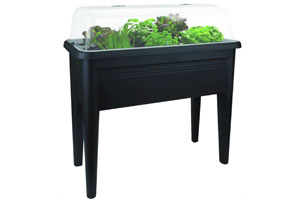 Praktische plastic kweektafel met kweekkap. Het water kan gemakkelijk afgevoerd worden door de gaten in de bodem. Ideaal om op hoogte tomatenplantjes, fruitplanten, groenten en allerlei kruiden te laten groeien. Op de kap zit een ventilatieregelaar waarbij u eenvoudig meer of minder buitenlucht toelaat tot de moestuinbak.